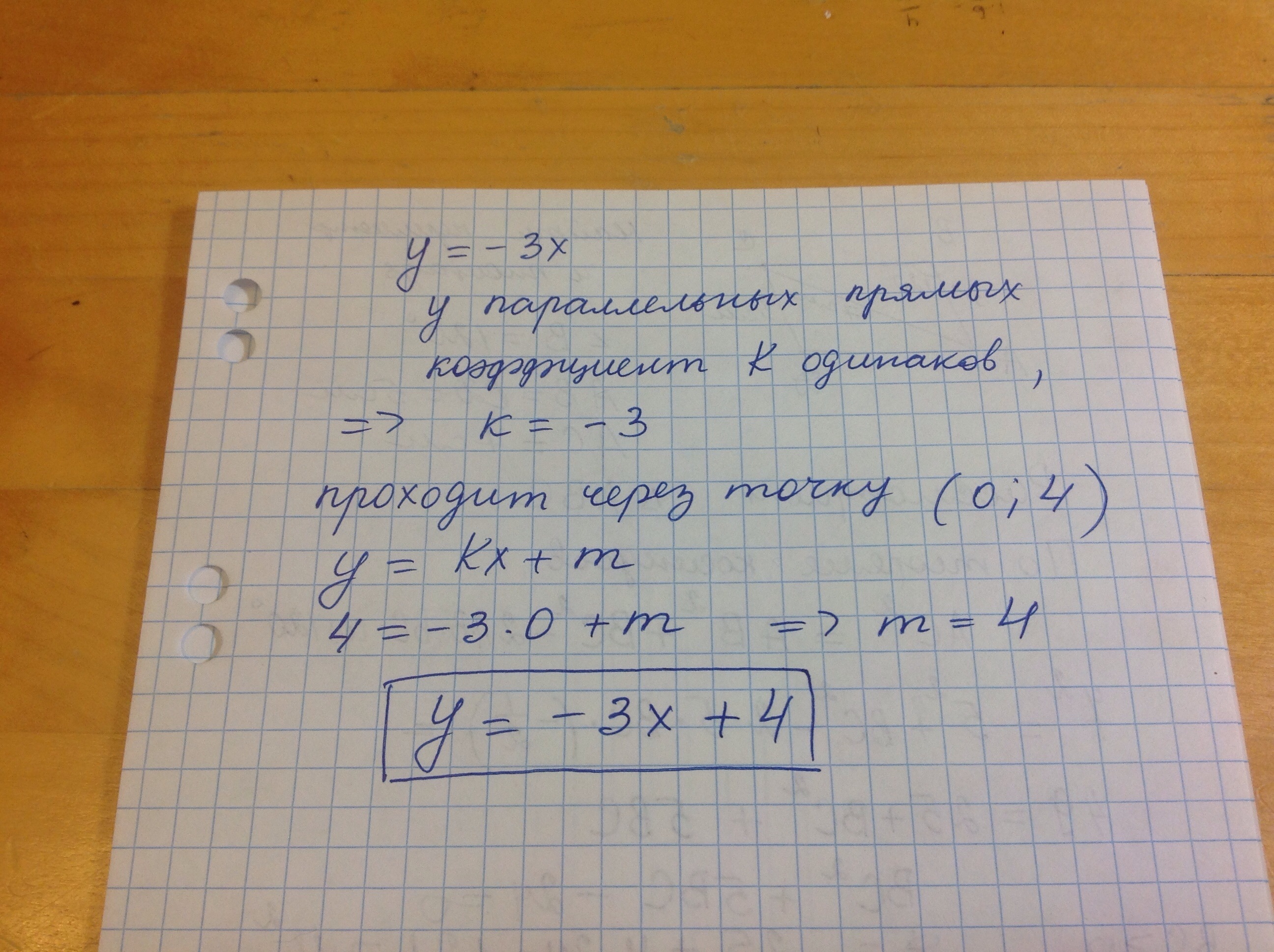 задайте формулой функцию, график которой проходит через точку (0;4) и параллелен графику функции у= -3х , помогите пожалуйста!