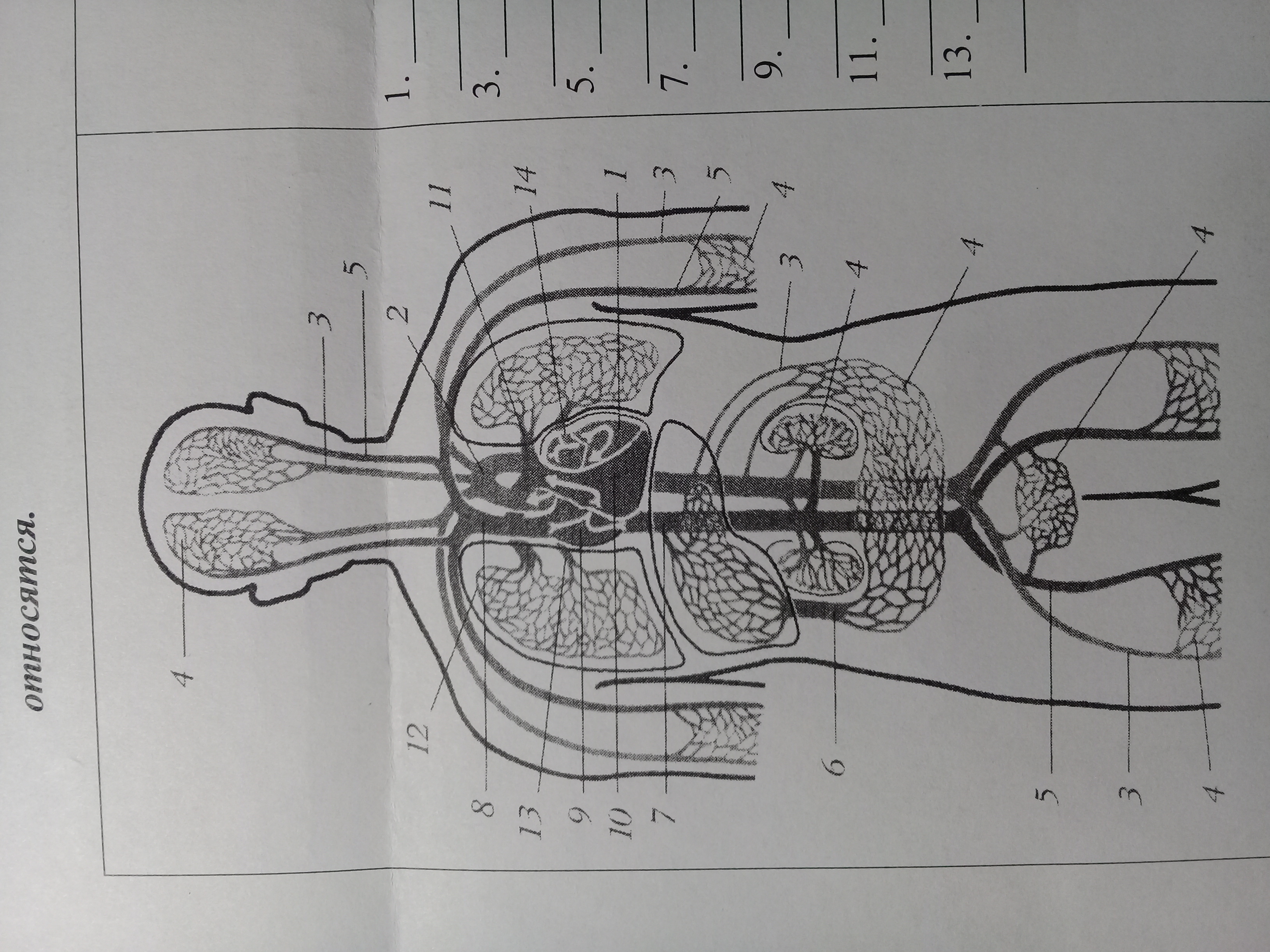 Назовите органы системы кровообращения, обозначенные на рисунке нечетными цифрами, определите, к какому кругу кровообращения они относятся.