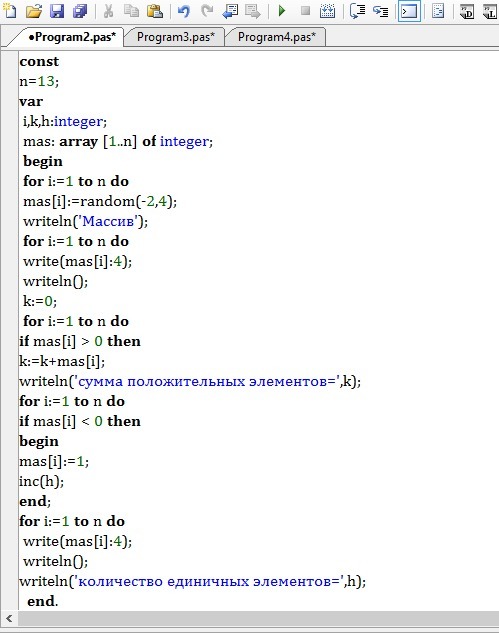 Writeln('Сумма положительных равна ',a.Where(t->t>0).Sum);