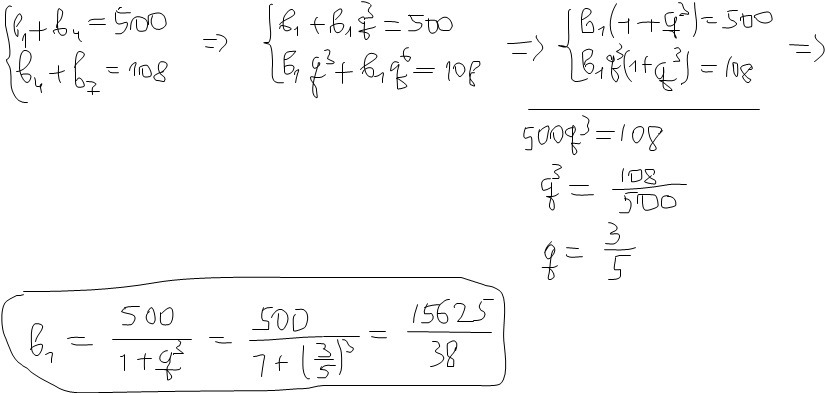 в геометрической прогрессии известно что b1+ b4 = 500; b4 + b7 = 108 найдите первый член данной прогрессии, до завтра, пожалуйста