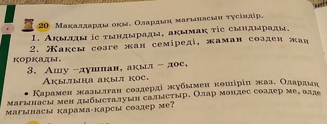 2 бұнда адамға пайда акелмейтіні ол дұшпан, ыза кек деген секілді ал ақыл адамның досы яғни егер ақылды болсан теренірек ойлана түс деген мағына