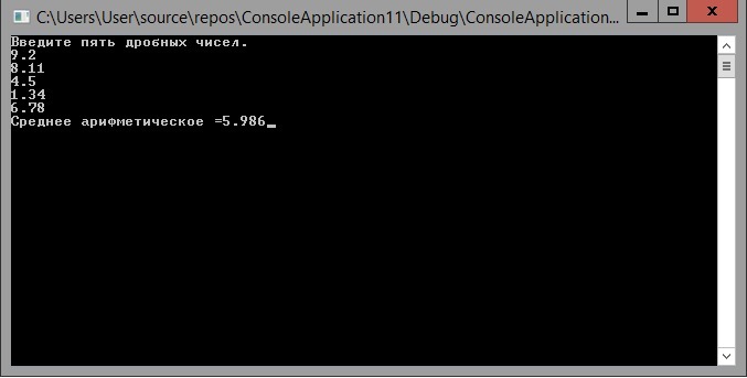 Написать программу которая вводит с клавиатуры 5 дробных чисел и вычисляет их арифметическое используя цикл for
