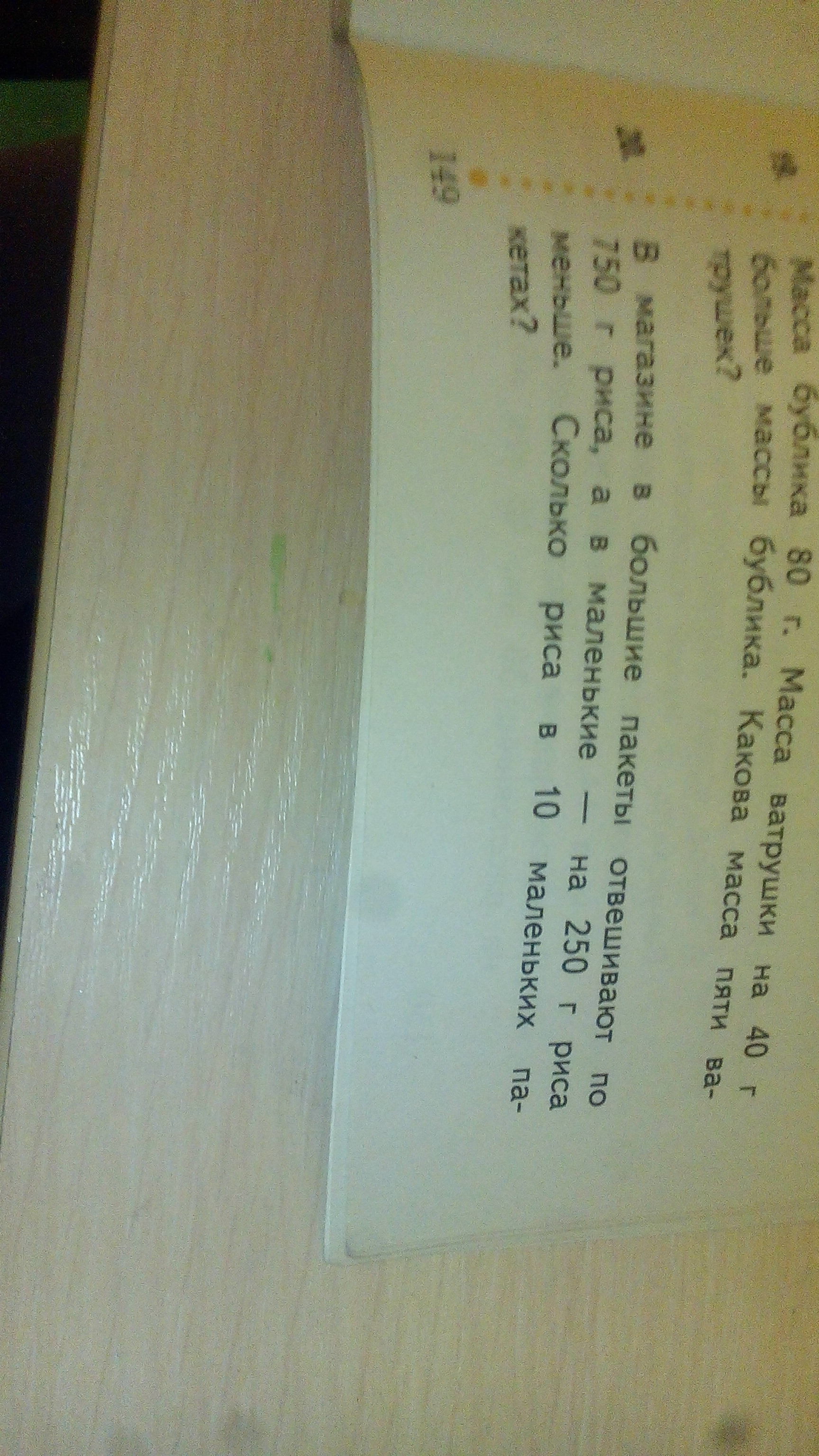 1)750-250=500 гр-риса в одном малеьком пакете