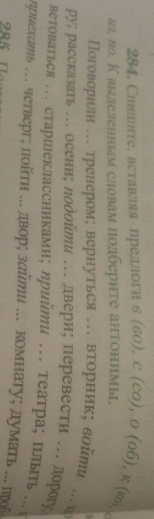 Поговорили с тренером, вернутся во вторник,войти к ..... , рассказать о осени, подойти к двери, перевести с дорогу, ветоваться со старшеклассниками, прийти к театра, плыть в, приехать в четверг, пойти во двор, войти в комнату, думать о ...