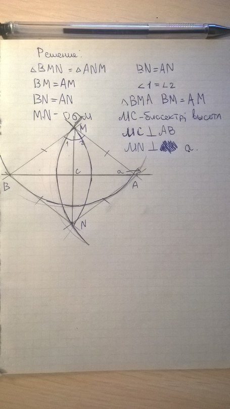 Даны прямая и точка, не лежащая на ней. Постройте прямую , проходящую через данную точку и перпендикулярную к данном прямой.
