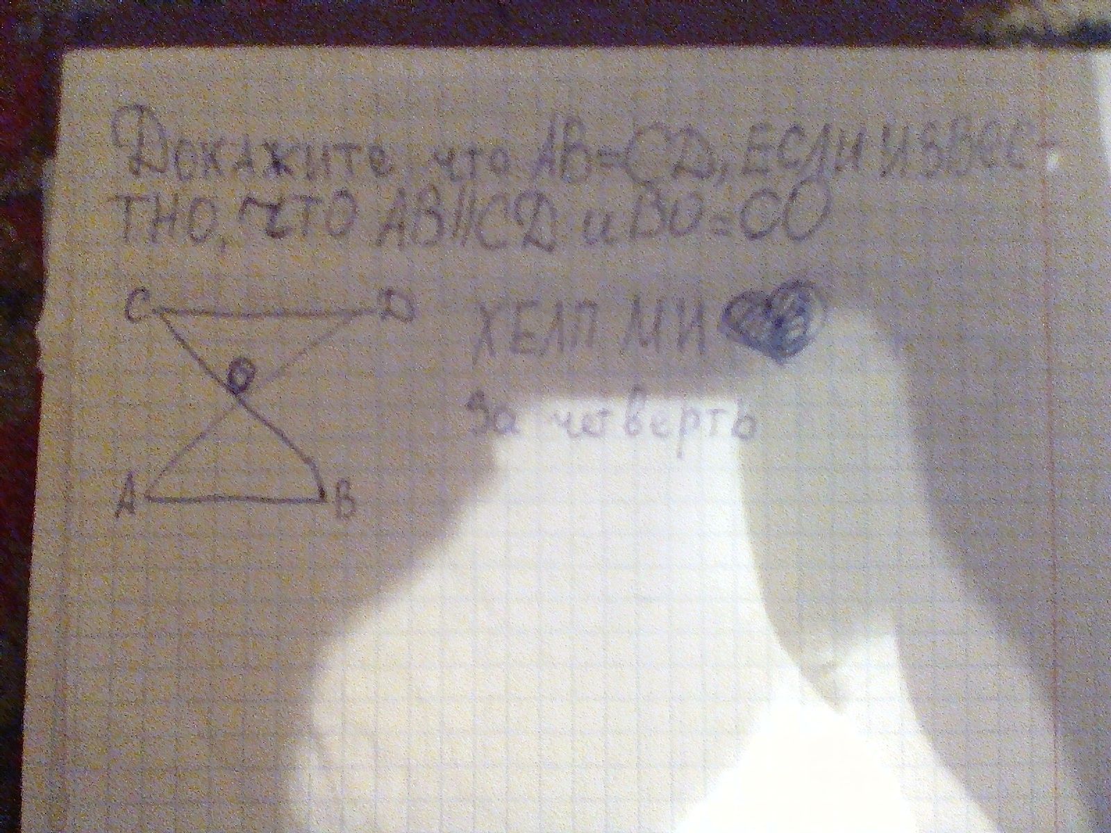 дорисуй до квадрата и напиши,что диагонали в точке пересечения делятся пополам