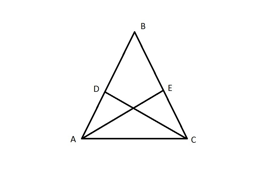 Биссектриса делит ∠BAC и ∠ACB пополам, при этом ∠BAC=∠ACB, значит, ∠EAC=∠DCA