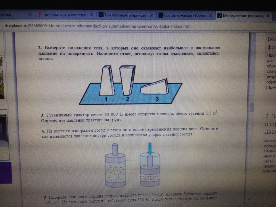 2. Положение 2, т.к. давление это отношение силы к площади, на которую действует эта сила. p=F/S