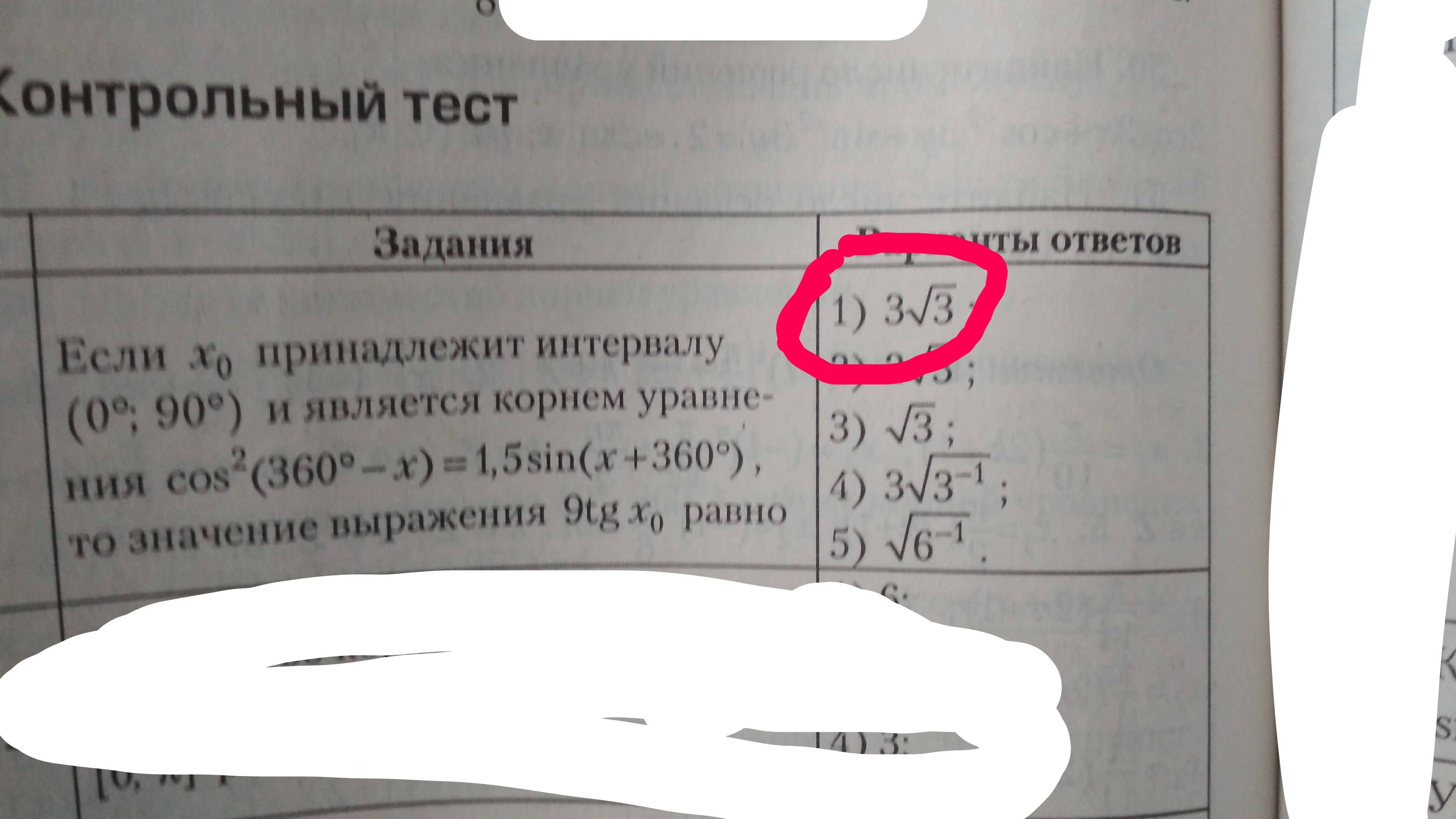 Помогите пожалуйста решить тригонометрическое уравнение!!!! ответ-1
