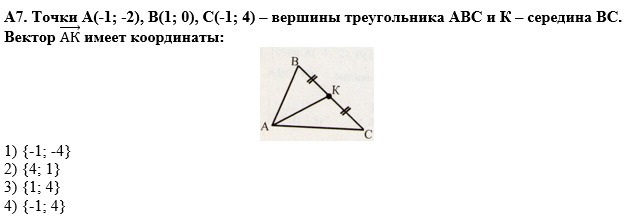 И вектор АК = К-А = (0;2) - (-1;-2) = (0;2) + (1;2) = (1;4)