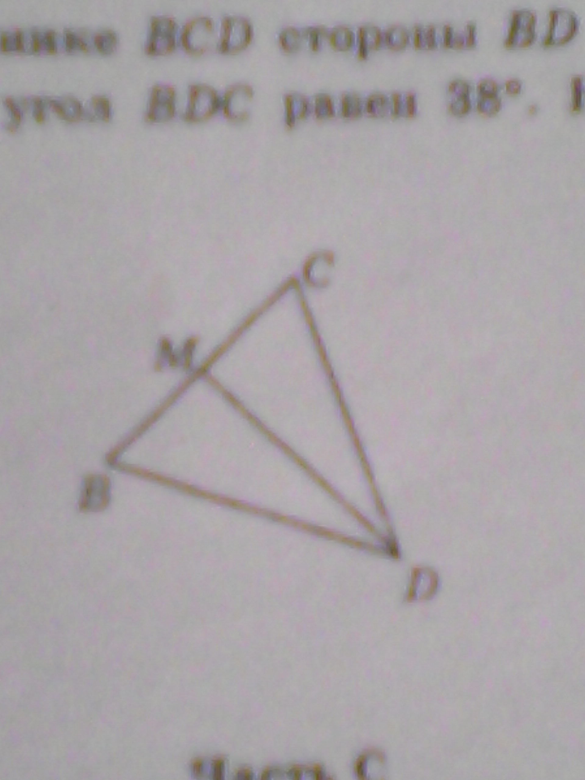 В треугольнике ВСD стороны ВD и CD равны DM -медиана, угол BDC равен 38°. Найдите углы BMD и BDM