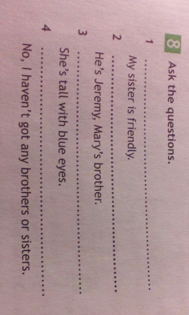 4) Have you got brother or sister?- у тебя есть брат или сестра?
