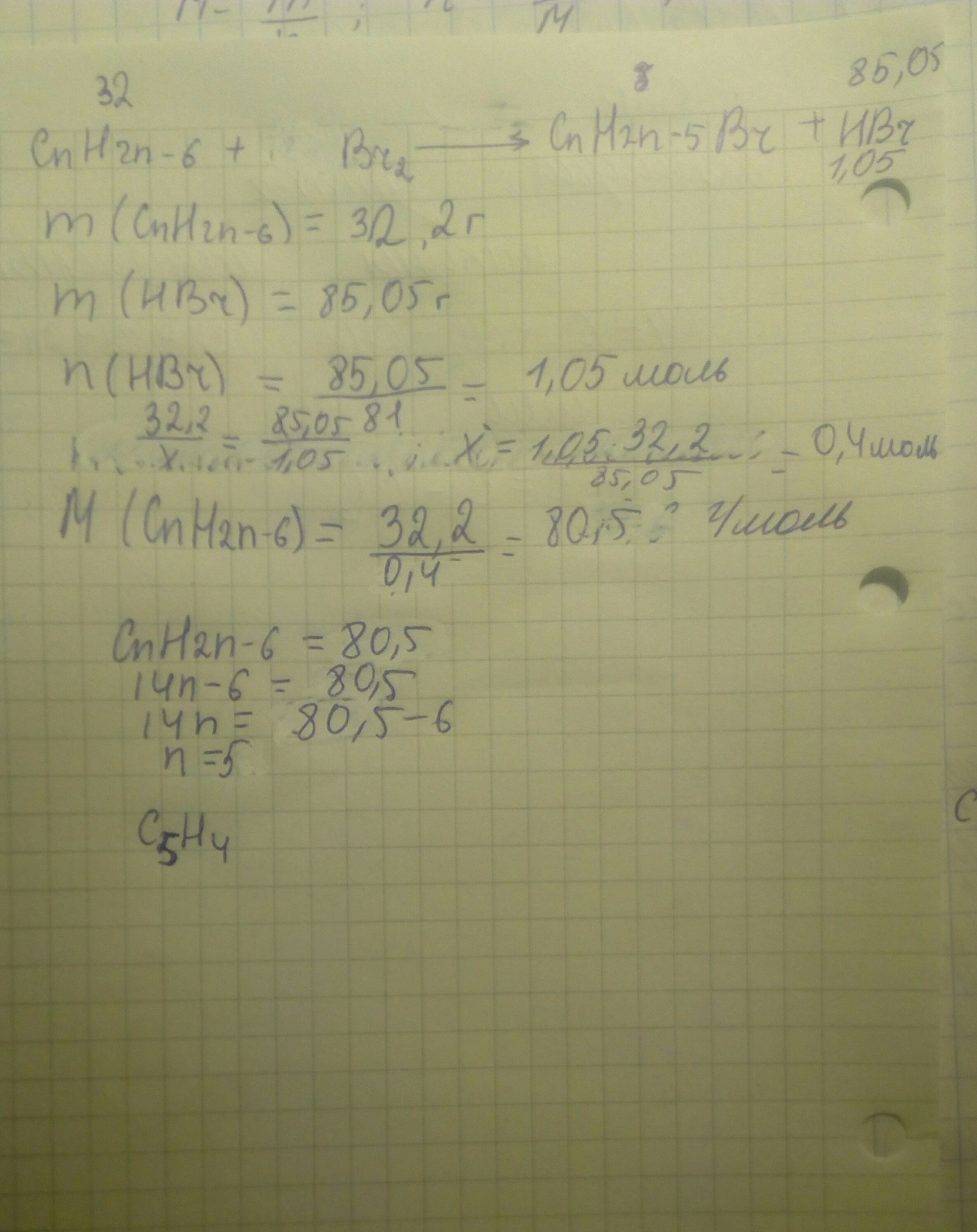 ищем количество моль бромоводорода ,составляем пропорцию ,находим молекулярную массу и приравниваем