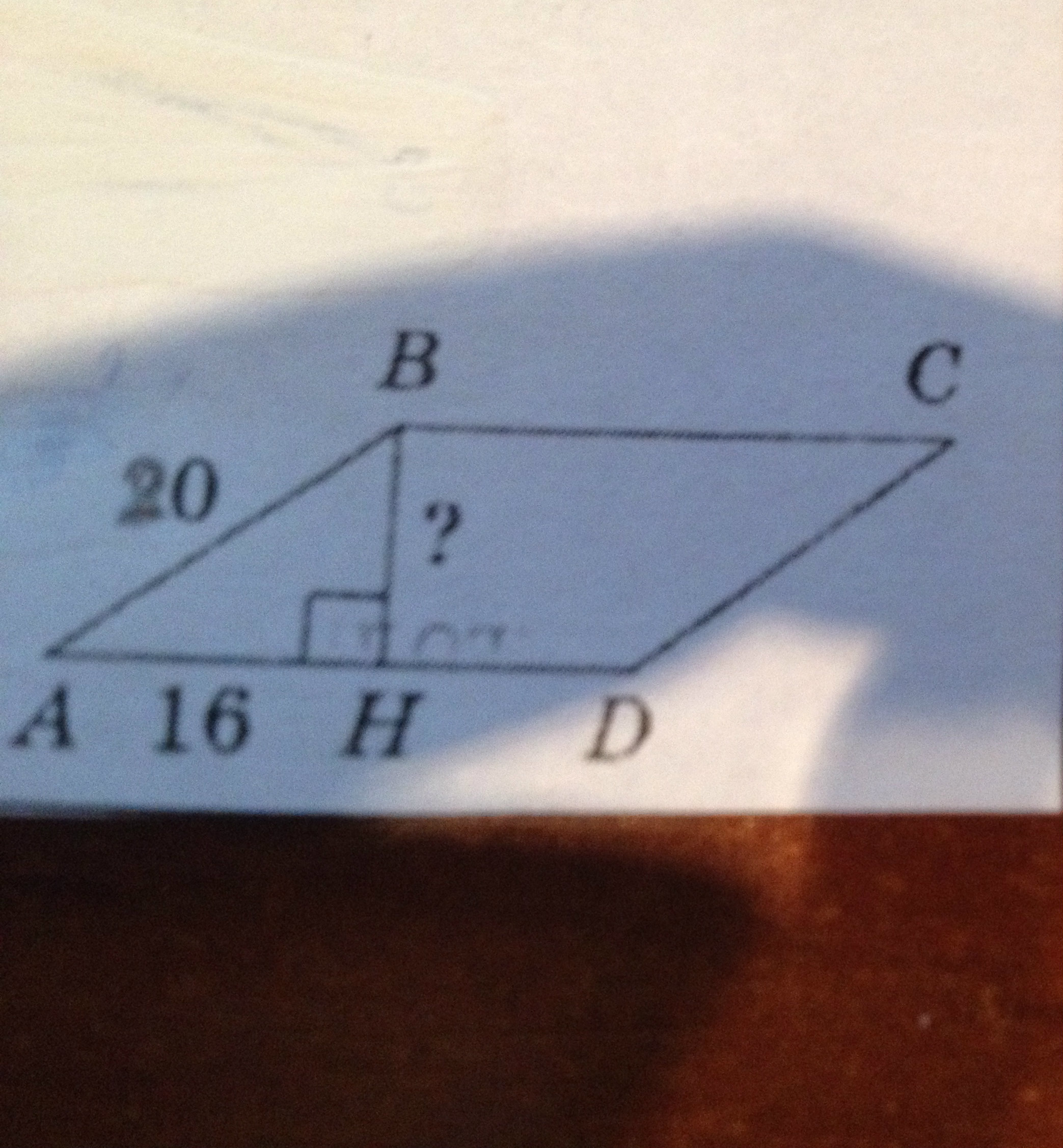 BH² = 20² - 16² = 400 - 256 = 144