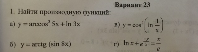 МНЕ НУДНА ПОМОЩЬ. Надо найти производные, и их надо сдать завтра. (Все на картинке). ПОЖАЛУЙСТА.