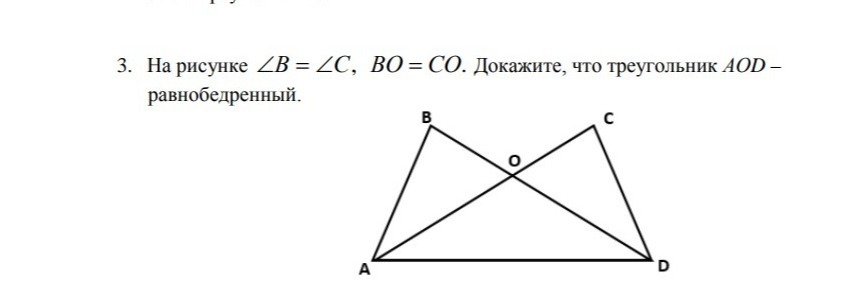 На рисунке B=C,BO=CO.Докажите что треугольник AOD-Равнобедренный