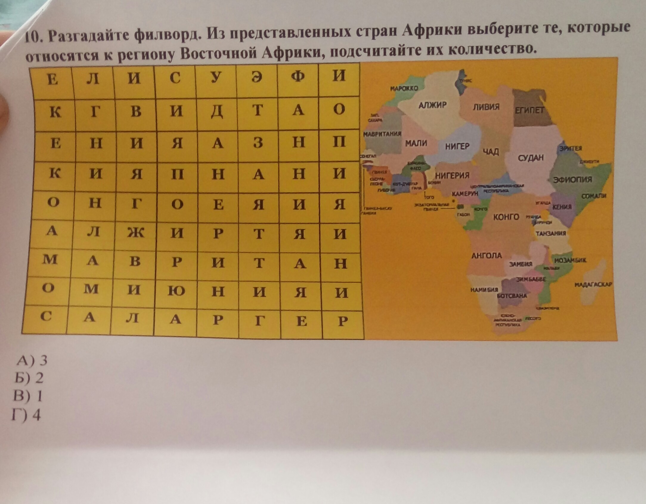 Ой, на карте не указаны Кения и Малави. Тогда только Эфиопия и Сомали. Ответ: Б