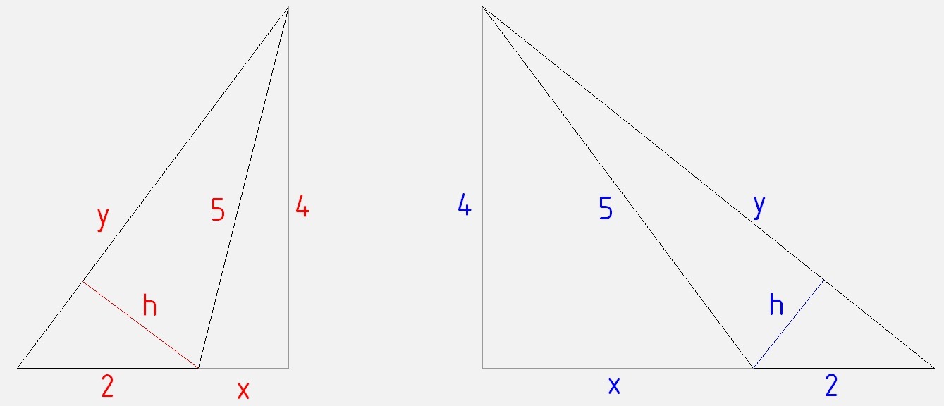 И снова два варианта - основание 2, высота 4, но сторона 5 может быть или длиннее или короче третьей стороны треугольника.