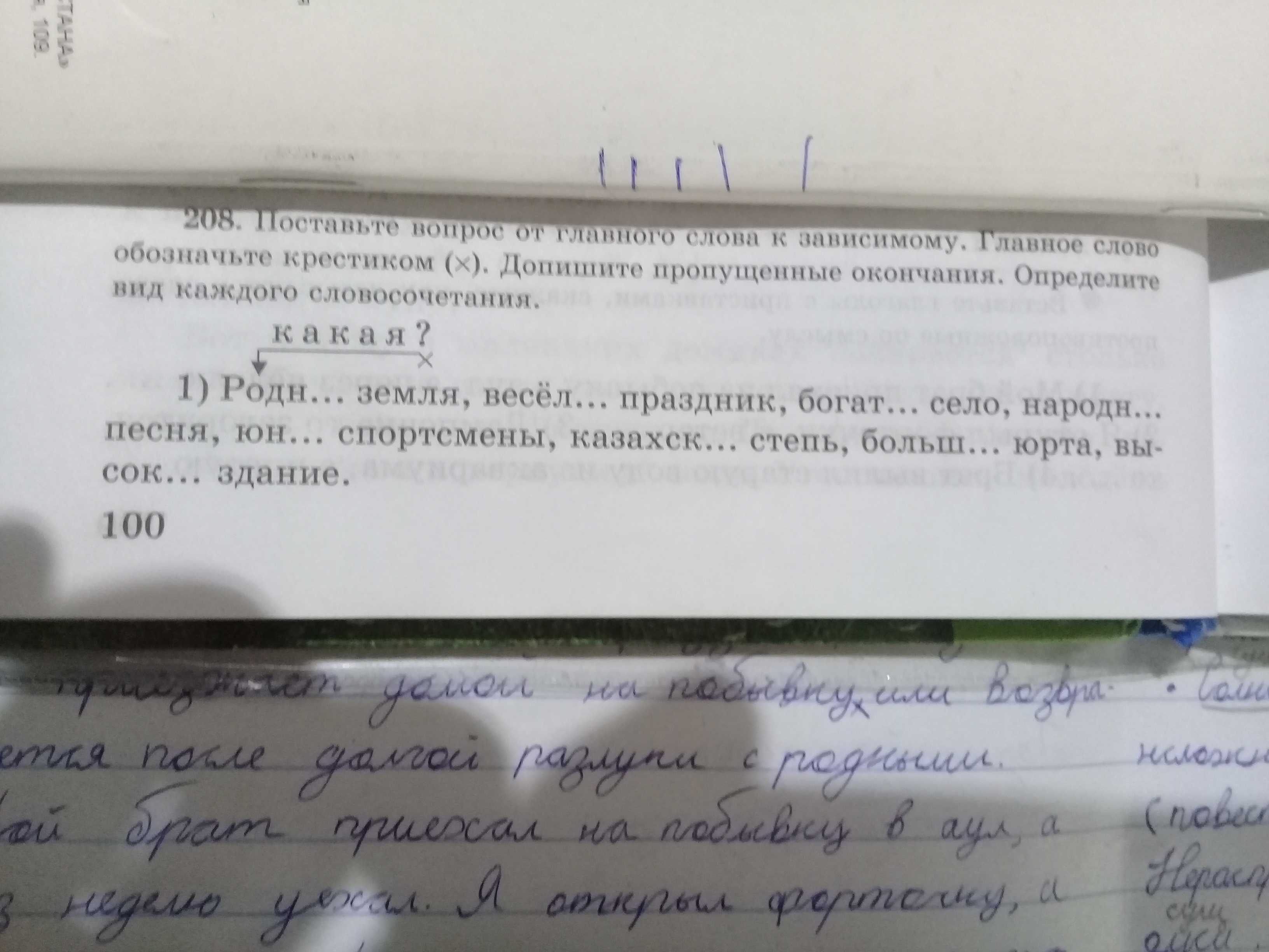 Поставьте вопрос от главного слова к зависимому. Главное слова обозначьте крестиком. Допишите пропущенные окончания. Определите вид каждого словосочетания