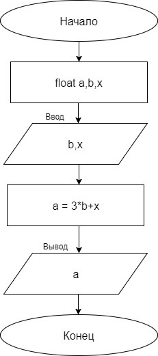 Блок-схема для нахождения выражения: a = 3*b+x.