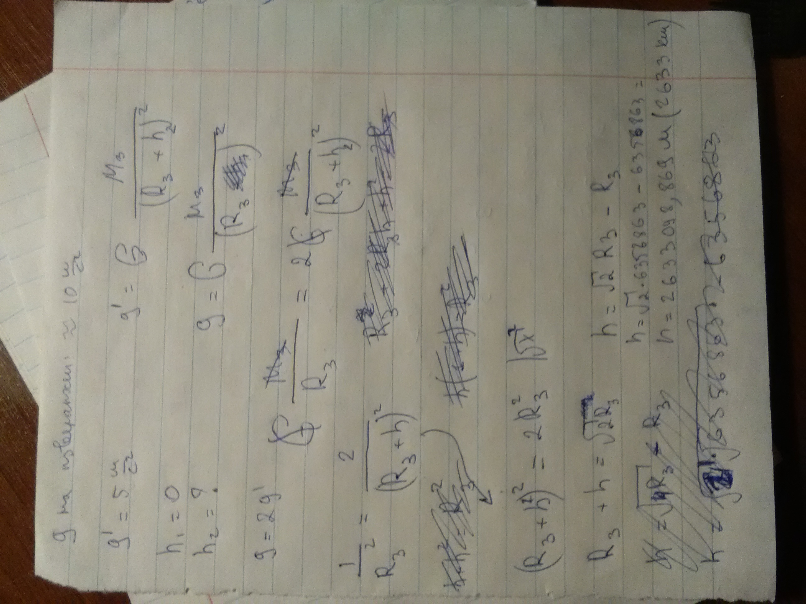 На какой высоте на поверхности Земли ускорение низкого падения будет в 2 раза меньше чем на неё поверхности, дам 30балов