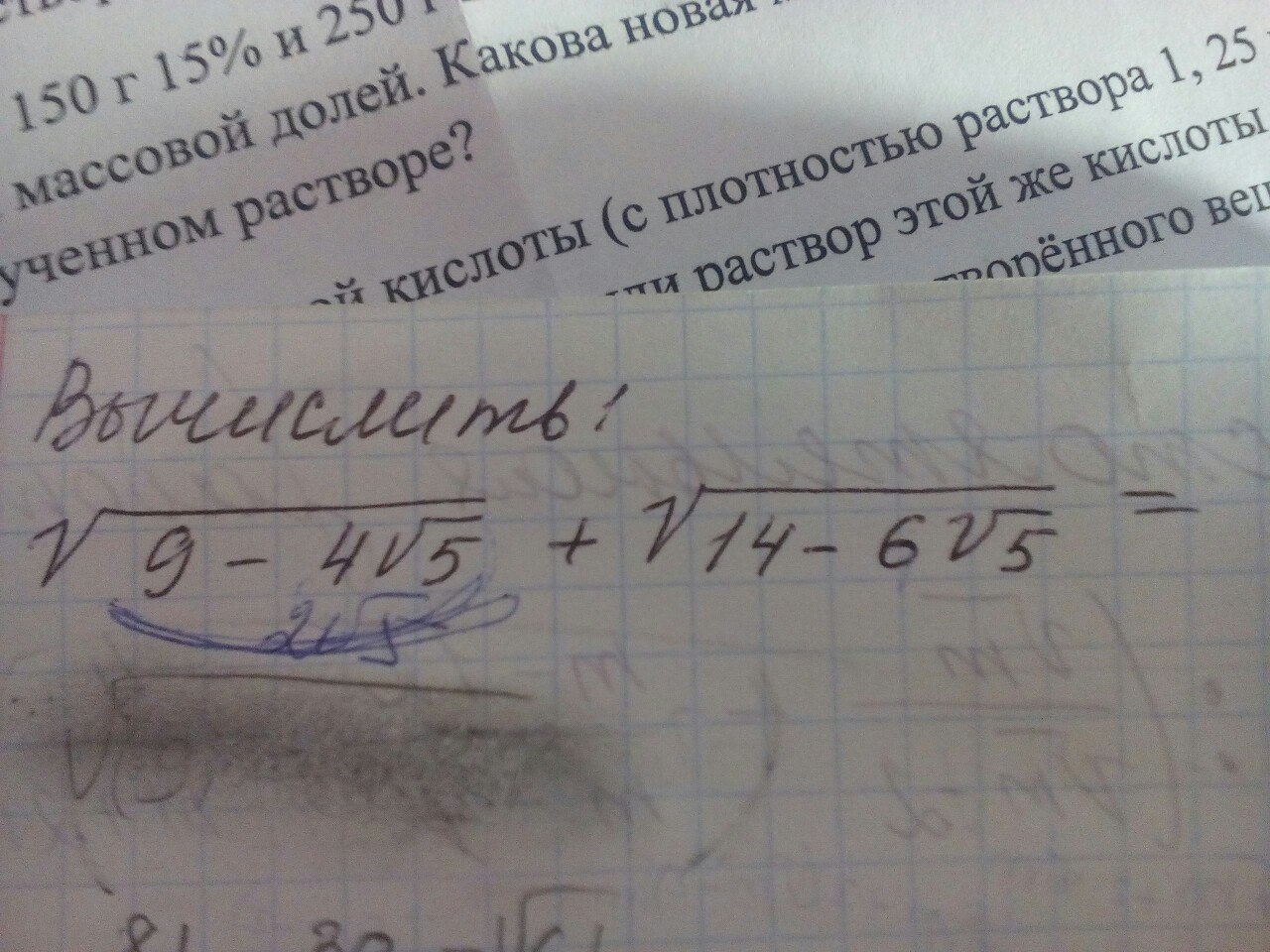 9-4 sqrt{5} + sqrt{ (9-4 sqrt{5})(14-6 sqrt{5 } )} +14-6 sqrt{5} = sqrt{9-4 sqrt{5} } + sqrt{14-6 sqrt{5 } }=