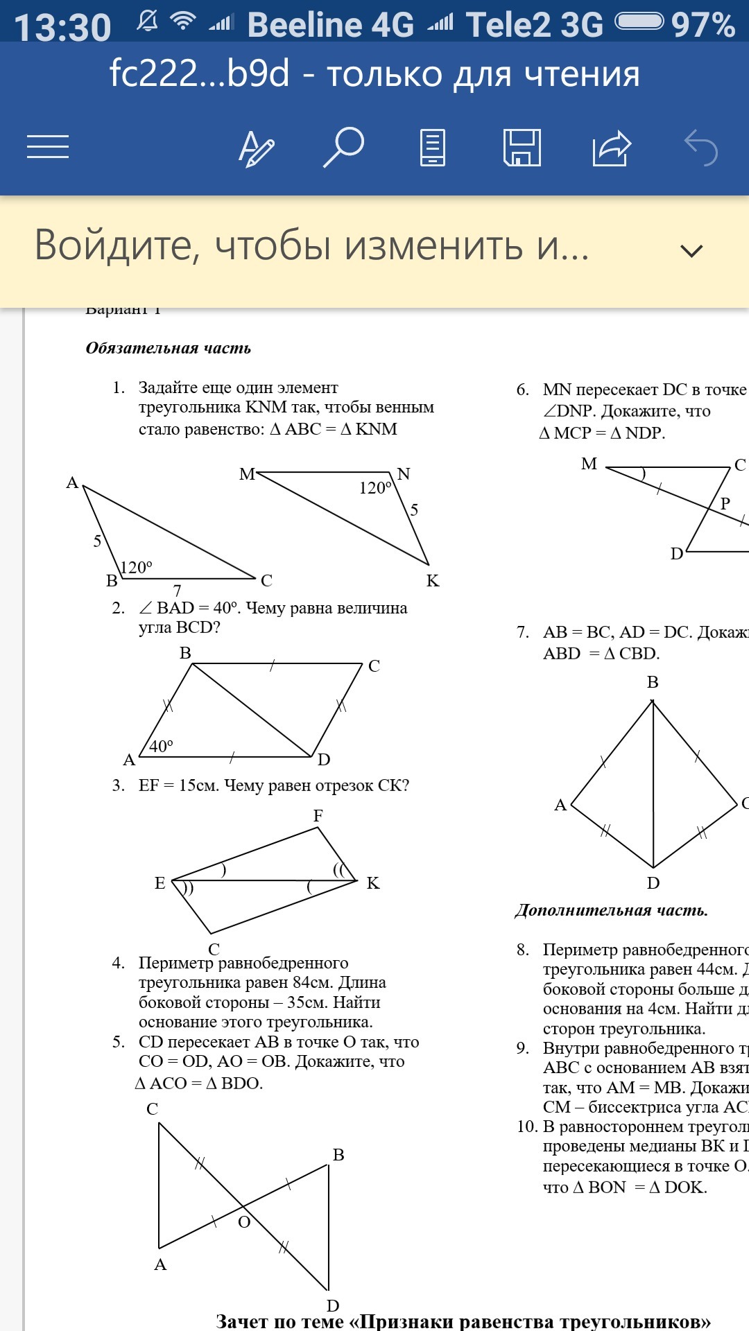 В первом задании надо надписать у второго треугольника (КNM) цифру семь на отрезке MN/