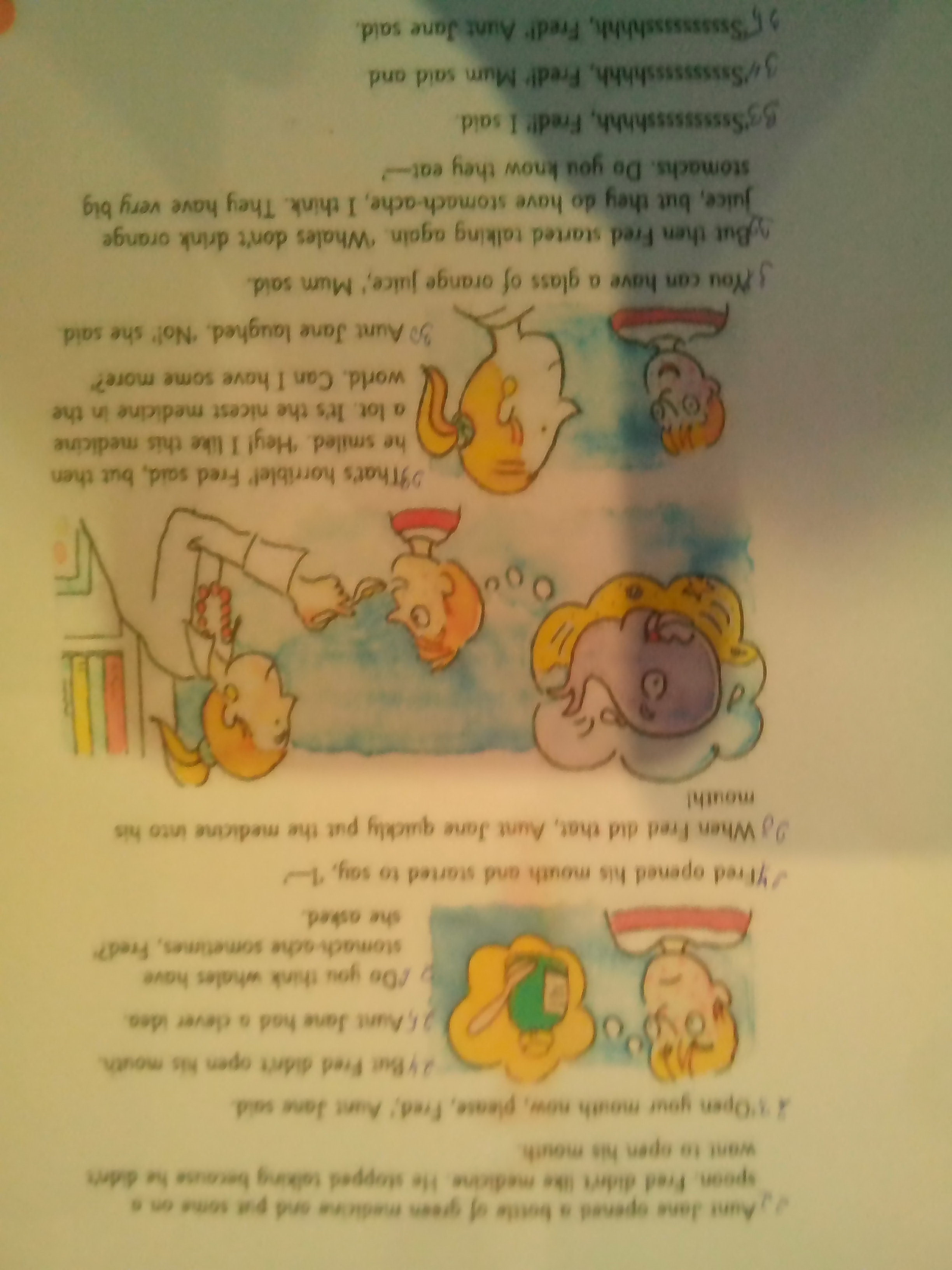 Когда Фред это сделал, тетя Джейн быстро засунула ложку с лекарством в его рот!
