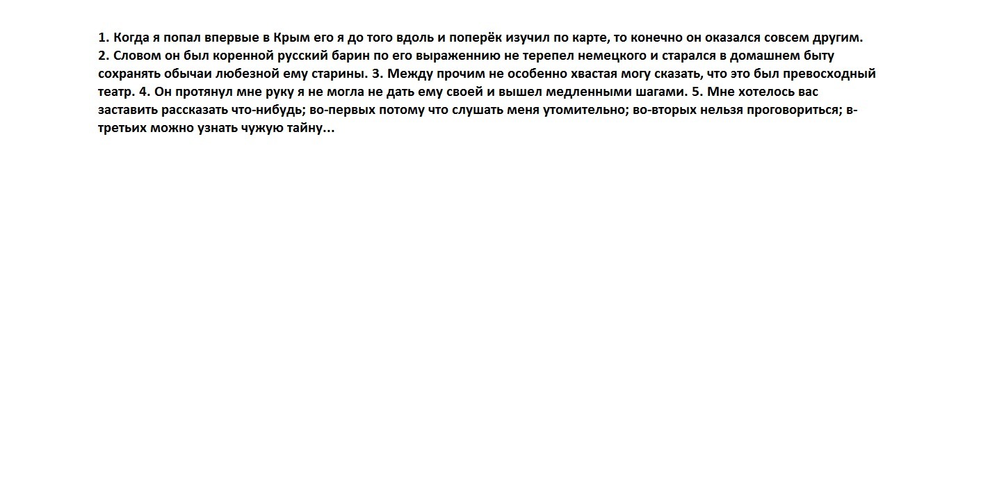 Мне хотелось вас заставить рассказать что-нибудь; во-первых, потому, что слушать меня утомительно; во-вторых, нельзя проговориться; в-третьих, можно узнать чужую тайну... ВО-ПЕРВЫХ, ВО-ВТОРЫХ,