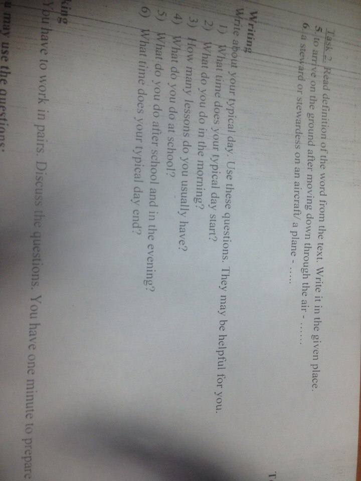 At 8 o'clock.I have a breakfast.Usually I have 5lessons.I am playing with my friends.I am playing computer games.In 11:30 o'clock