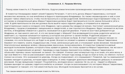 Помогите написать сочинение для 6 класса по сочинению А.С. Пушкина "Метель".