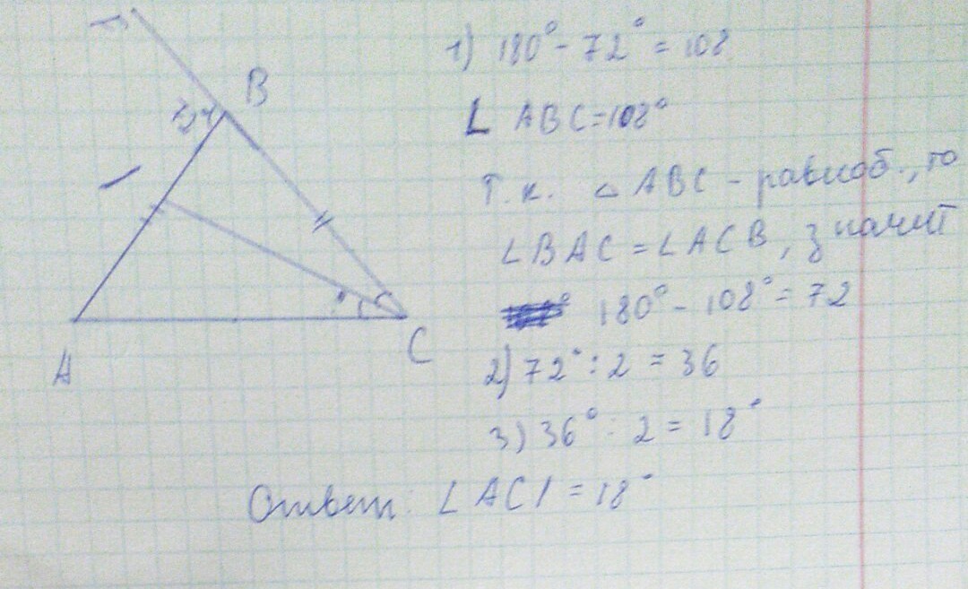 В равнобедренном треугольнике abc ,ab=bc,проведена биссектриса clи на продолжении стороны cb за точку b выбрана точка f.Известно,что угол abf=72 градусом.