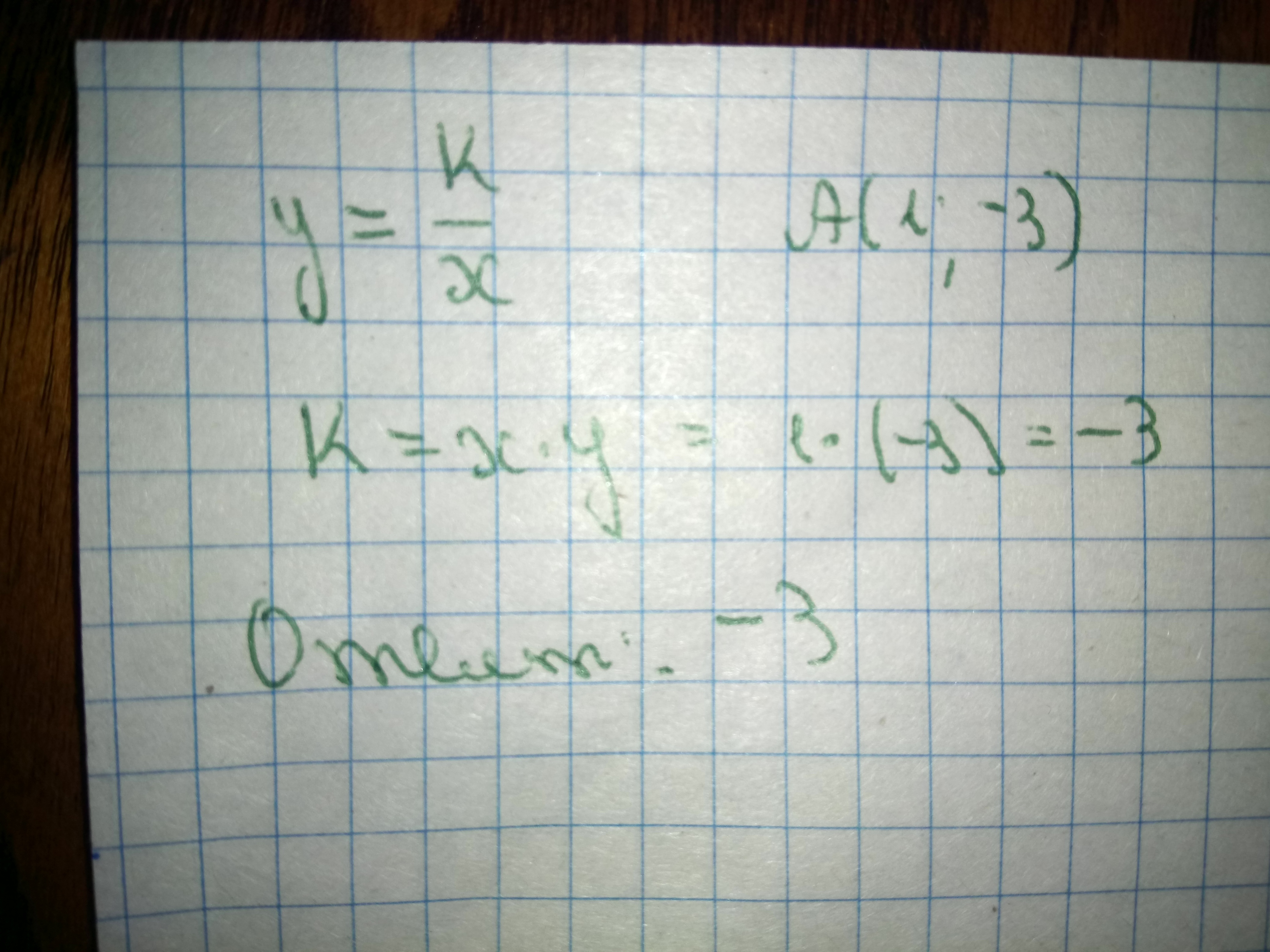 Найти значение K , если известно , что график функции y=k/x проходит через точку координатами A (1;-3).
