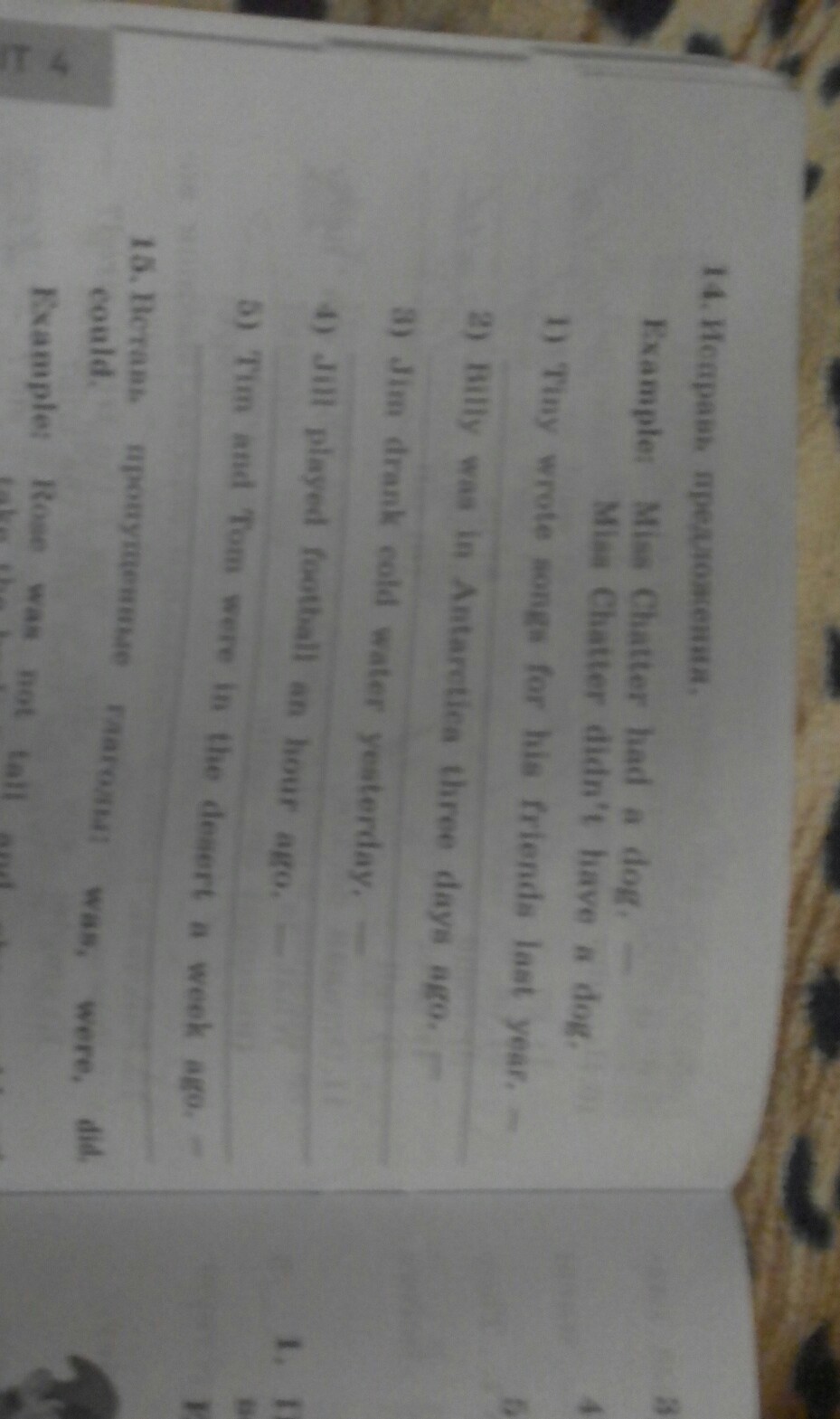 3)Jim didn't drink cold water yesterday.