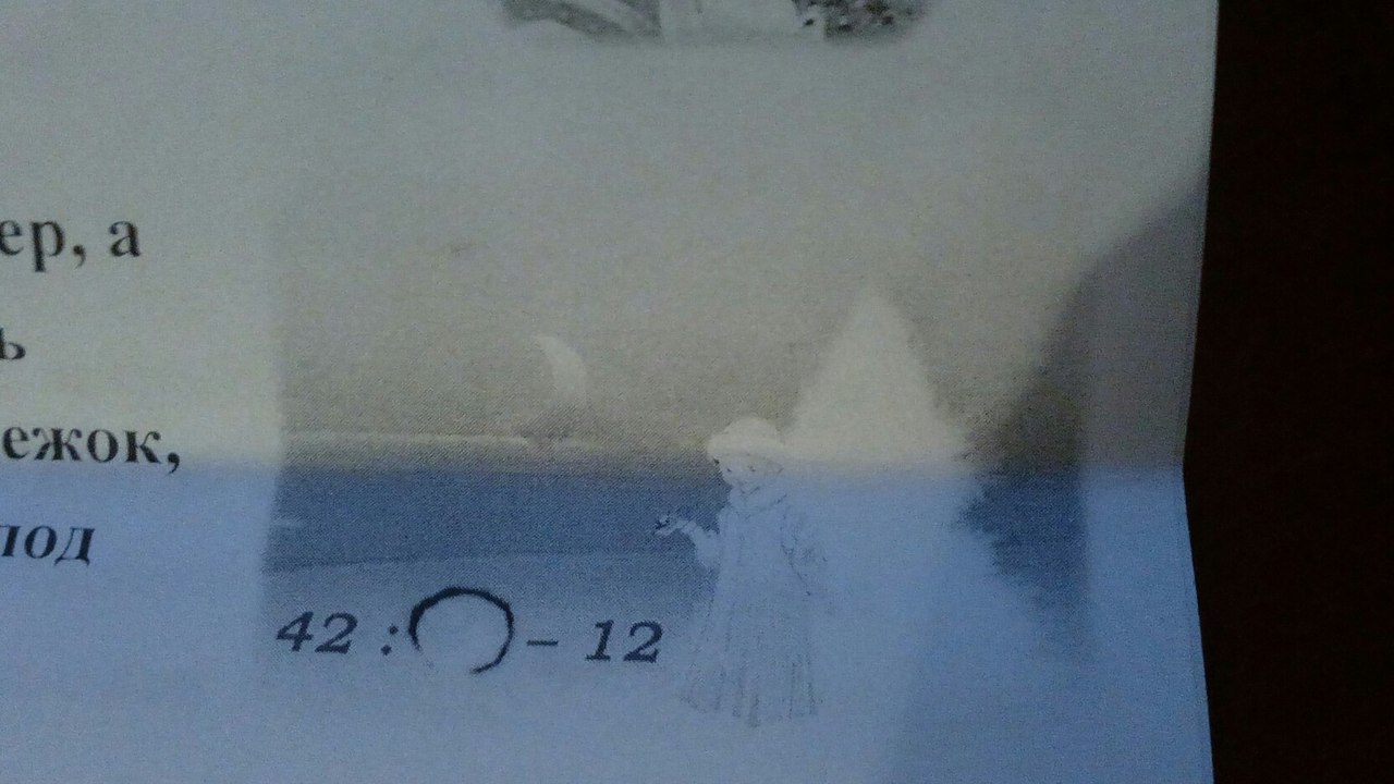 Дед Мороз написал на снегу для Снегурочки пример, а сам ушел по делам. Снегурочка должна была решить пример к приходу дедушки. Но тут кто-то бросил снежок, он упал на одно число. Что могло быть спрятано под снежком?