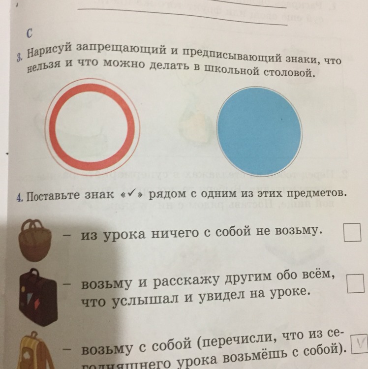 Нарисуй запрещающий и предписывающий знаки, что нельзя и что можно делать в школьной столовой