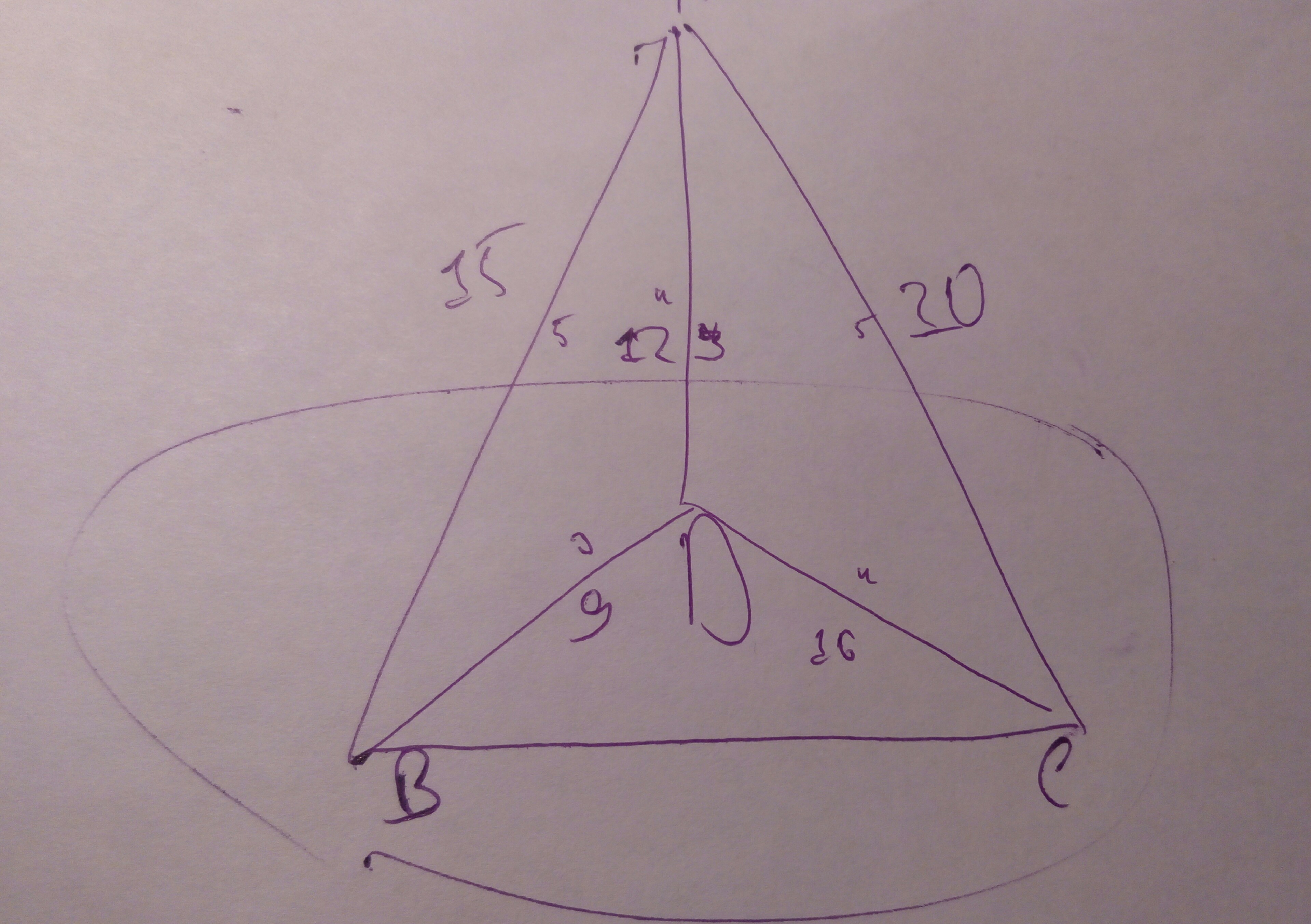 из точки А не лежащий на прямой а проведены к этой прямой перпендекуляр АД и две наклонные АВ и АС . найдите расстояние между точками ВС если АД=12см АВ=15см АС=20см и точка Д лежит на отрезки ВС