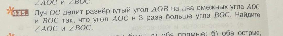 Пусть угол ВОС= х, тогда угол АОС= 3*х. Зная, что развернутый угол = 180 градусов, запишем уравнение: