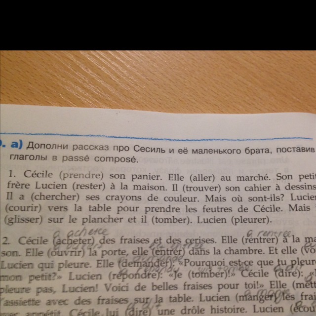 Prends / va / reste / trouve / cherché / cour / glisse / tombe / pleurt
