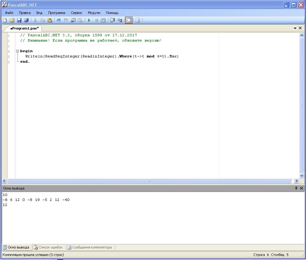 Writeln(ReadSeqInteger(ReadlnInteger).Where(t->t mod 4=0).Max)