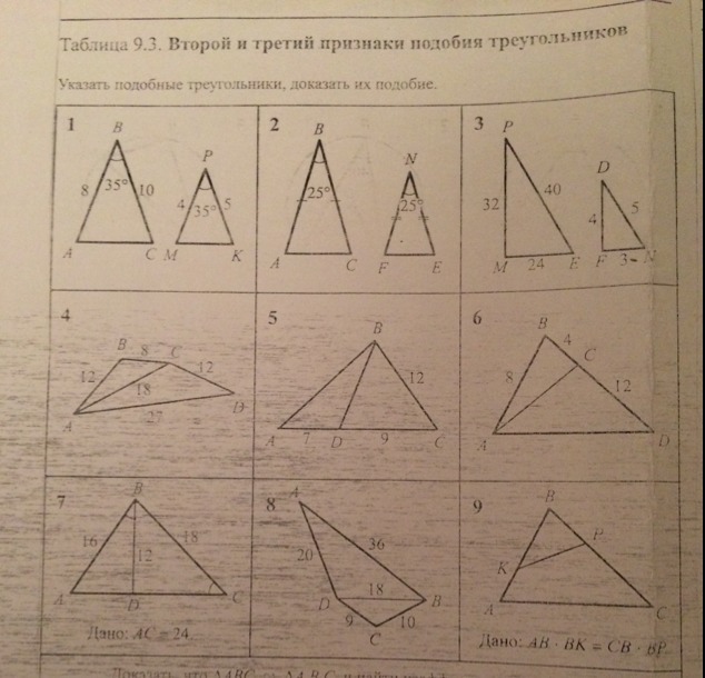 1)треугольник АВС подобен треугольнику МРК по двум сторонам и углу между ними (2 признак подобия) <B=<P и AB/MP=BC/PK 8/4=10/5=2 к=2