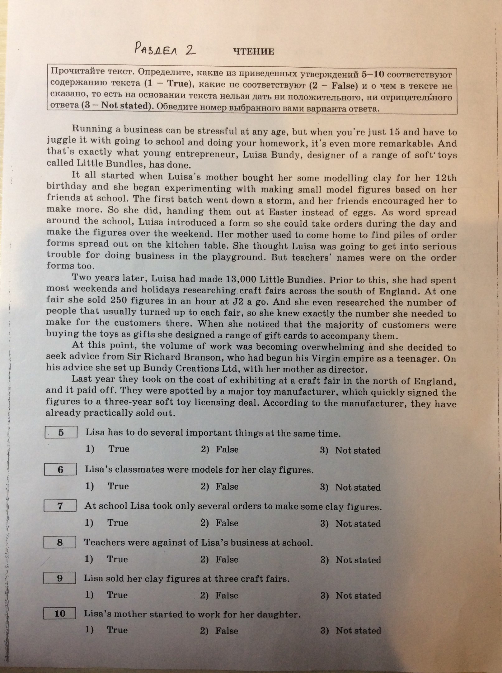 Определите, какие из приведенных утверждений 5-10 соответствуют содержанию текста, какие не соответствуют и о чем не сказано