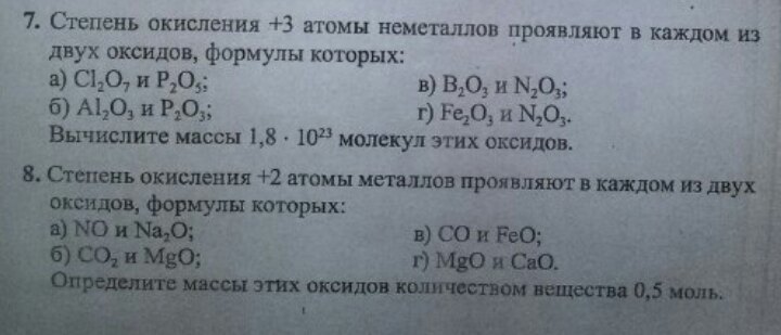 Можно решить и логично не думая про степень окисления. в 7 говорится про неметаллов, а два неметалла только под вариантом а). Также и в 8, только с металлами