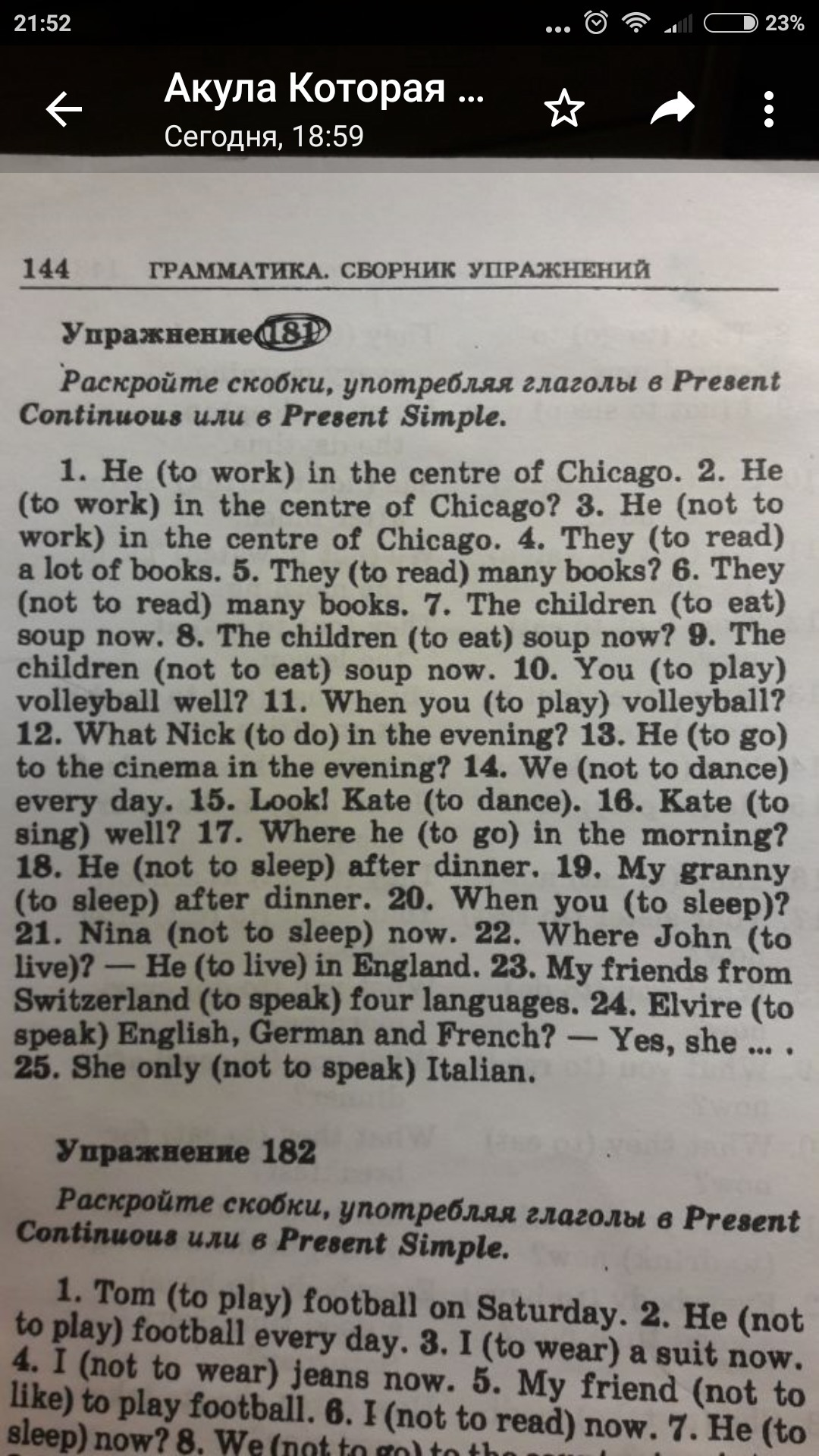 18) doesn't sleep 19) sleeps 20)When do you sleep? 21) is sleeping 22) Where is Jon leaving ? - is leaving 23) speaks 24) Does Elvire speak......? - does 25) She doesn't speak only Italian.