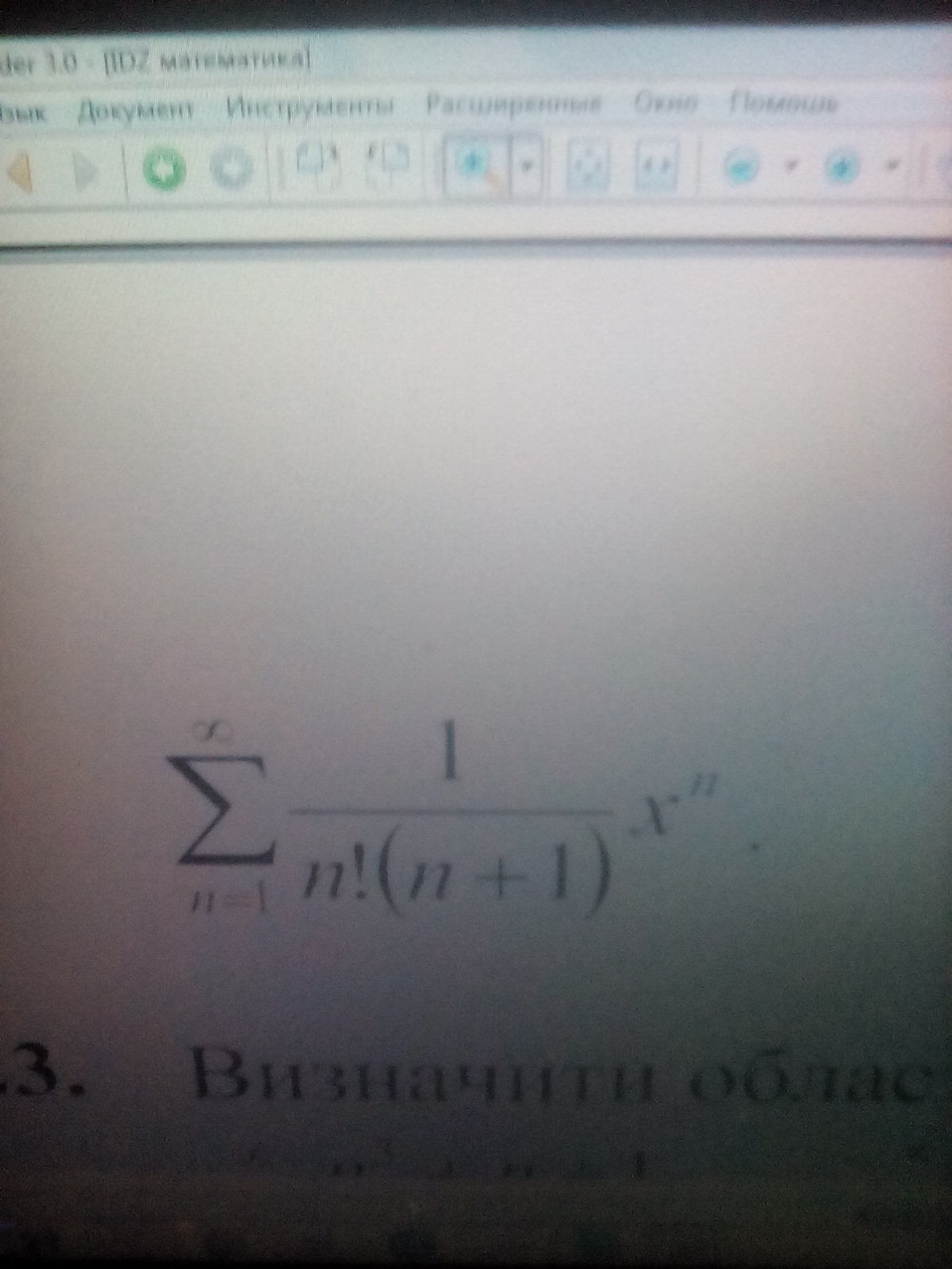 1)Визначити область збіжності ряду