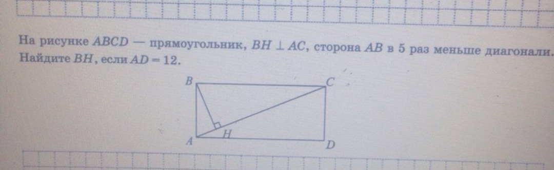 по теореме Пифагора из треугольника АВС: АС²=АВ²+ВС² (ВС=АD=12, т. к. ABCD-прямоугольник)