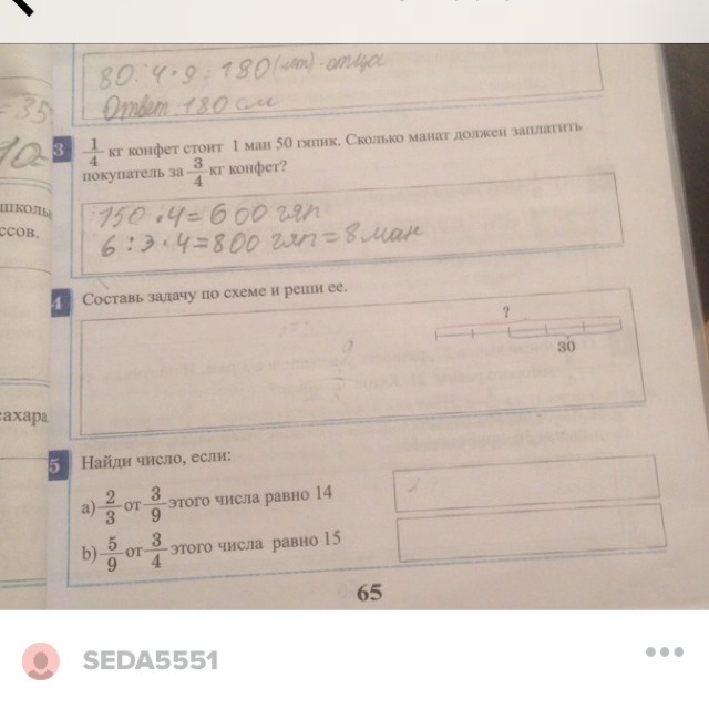 4) В магазине. Есть пять частей конфет. Сколько всего конфет в магазине если три части это 30 кг?