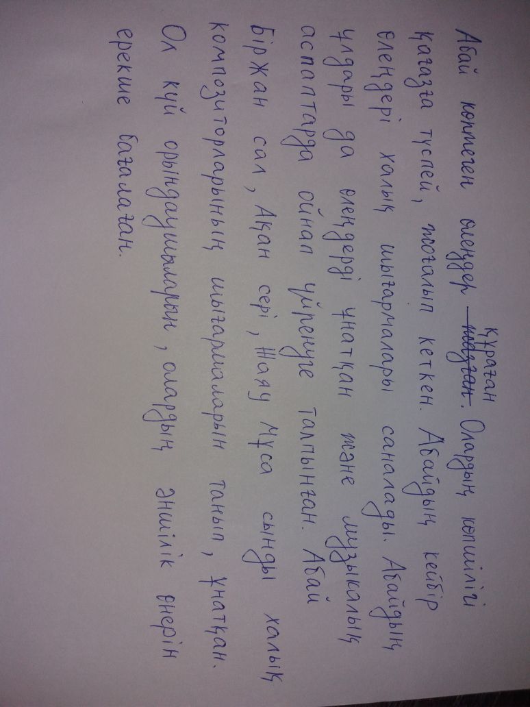 Абай сочинил много песен. Большинство из них не были записаны и потерялись навсегда. Некоторые песни Абая в наши дни воспринимаются как народные творения. Дети Абая также любили песни и стремились учиться игре на музыкальных инструментах. Абай узнал и полюбил творение таких народных композиторов, как Биржан сал, Акан сери, Жаяу Мусса, Таттимбет. Он особо ценил исполнителей кюев, и их певческое искусство.