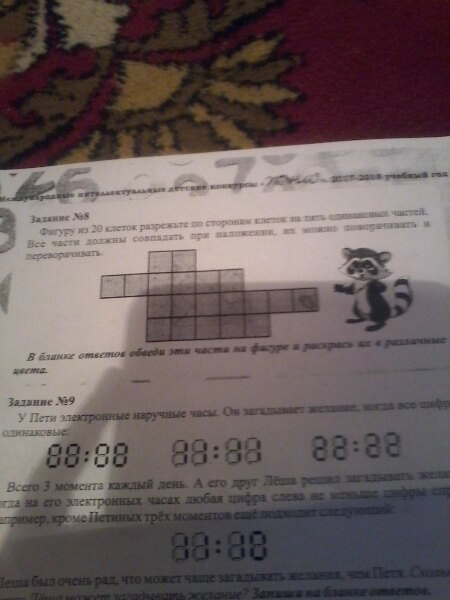 Помогите пожалуйста!,фигуру из 20 клеток разрежьте по сторонам клеток на пять одинаковых частей.Все части должны совпадать при наложении,их можно поворачивать и переворачивать. Тест пони 4 класс.Если не видно фигуру то простите камера плохая((