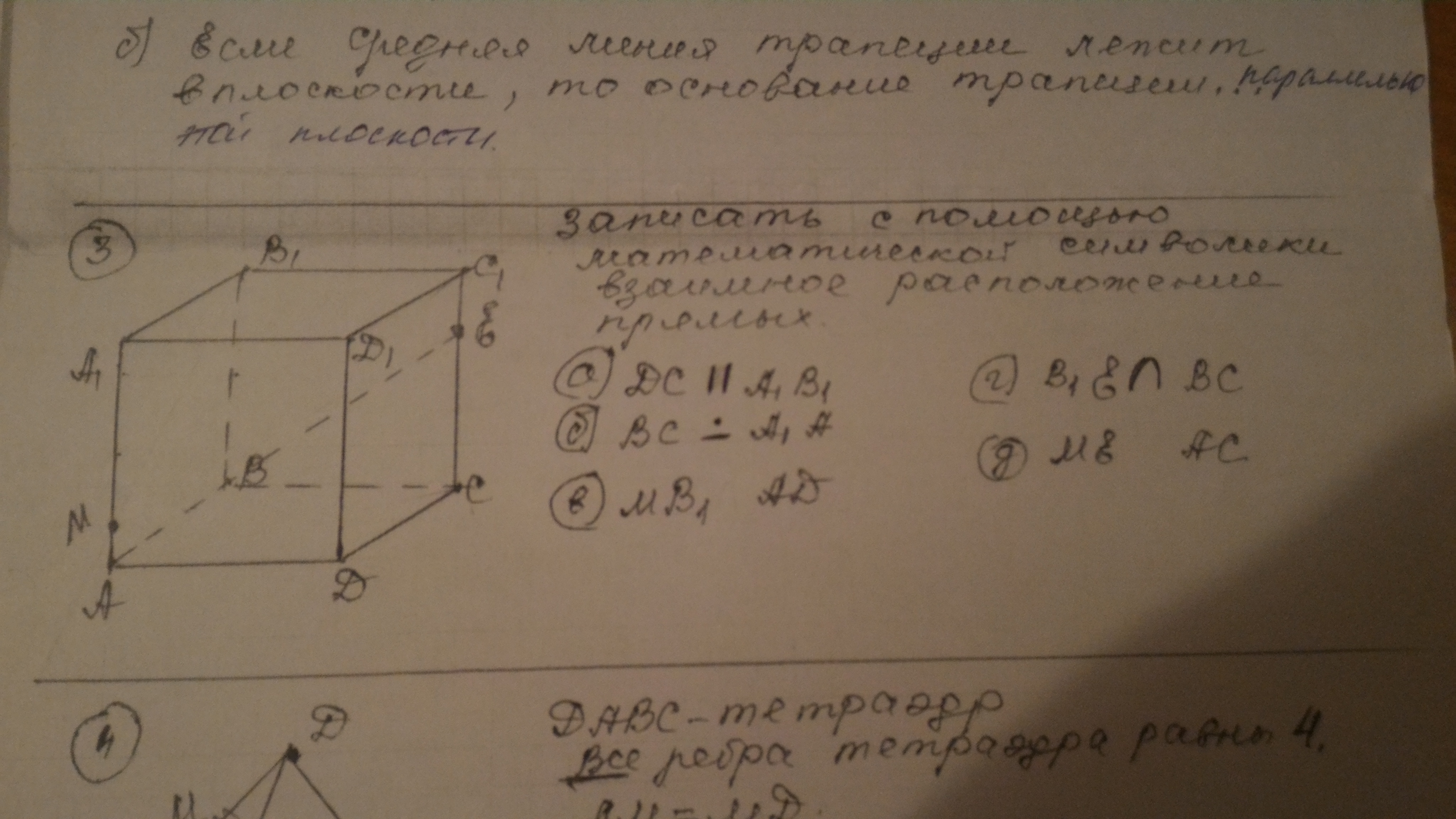 Выписать с помощью математической символики взаимное расположение прямых (б,в,д)